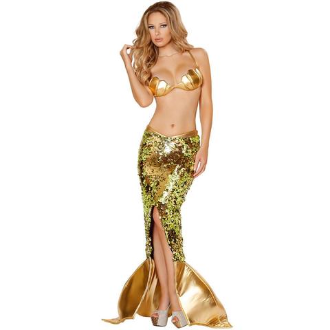 카니발 파티를위한 성인 골드 스팽글 섹시한 인어 원피스 코스프레 의상